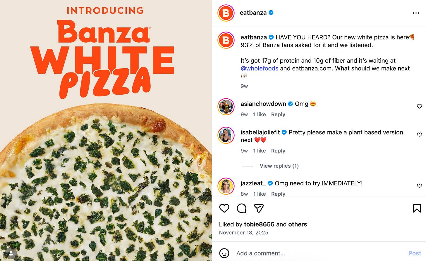 I love how Banza set up its Instagram profile description. You’re forced to think creatively and briefly given the character count and they do a great job at getting their top 3 points across in those short lines.